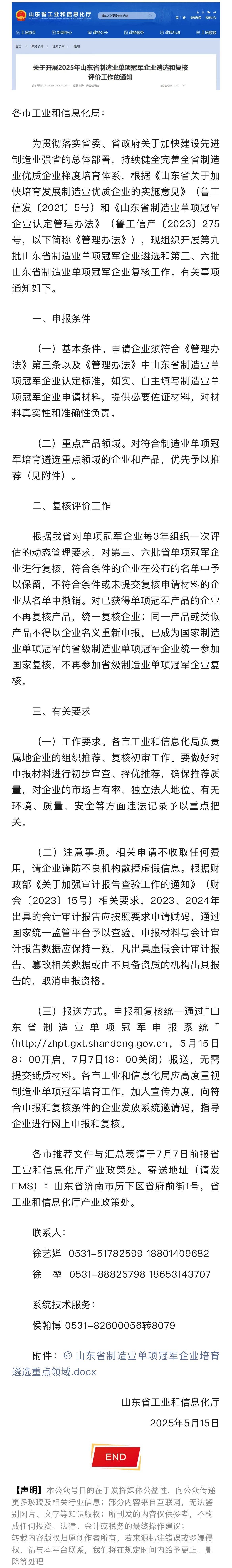 【政策導讀】關于開展2025年山東省制造業(yè)單項冠軍企業(yè)遴選和復核評價工作的通知