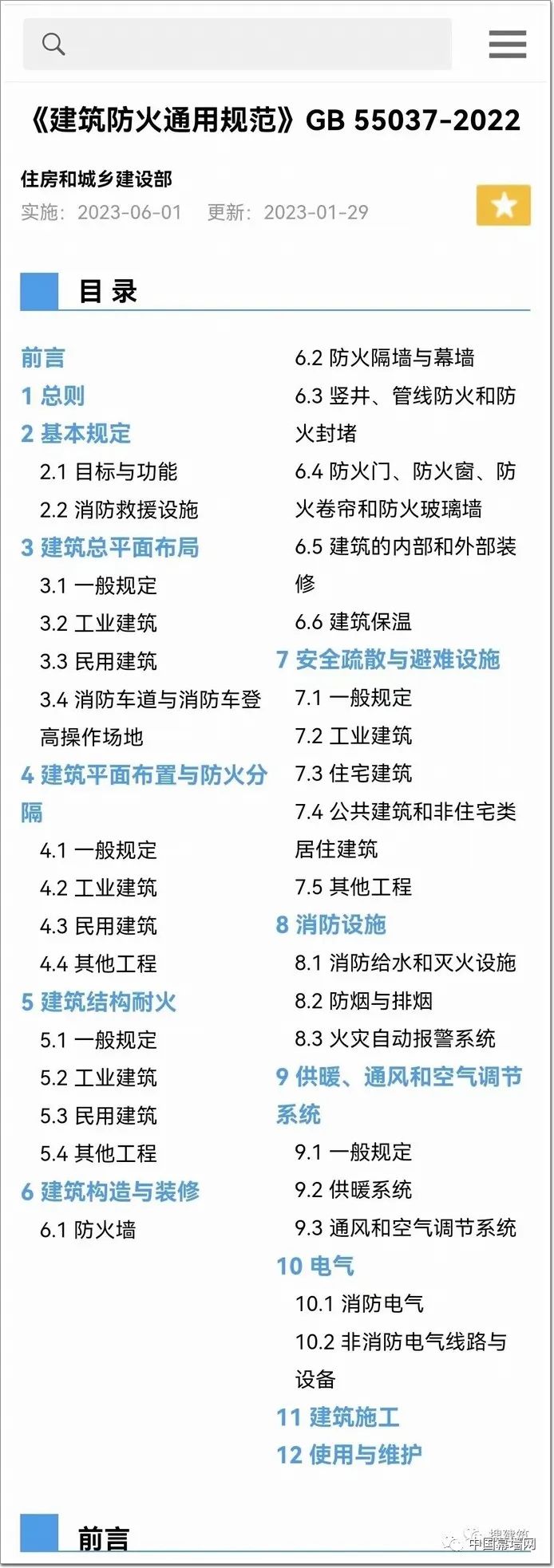 現(xiàn)批準《建筑防火通用規(guī)范》為國家標準,編號為GB 55037-2022,自2023年6月1日起實施。本規(guī)范為強制性工程建設規(guī)范,全部條文必須嚴格執(zhí)行?,F(xiàn)行工程建設標準中有關規(guī)定與本規(guī)范不一致的,以本規(guī)范的規(guī)定為準。